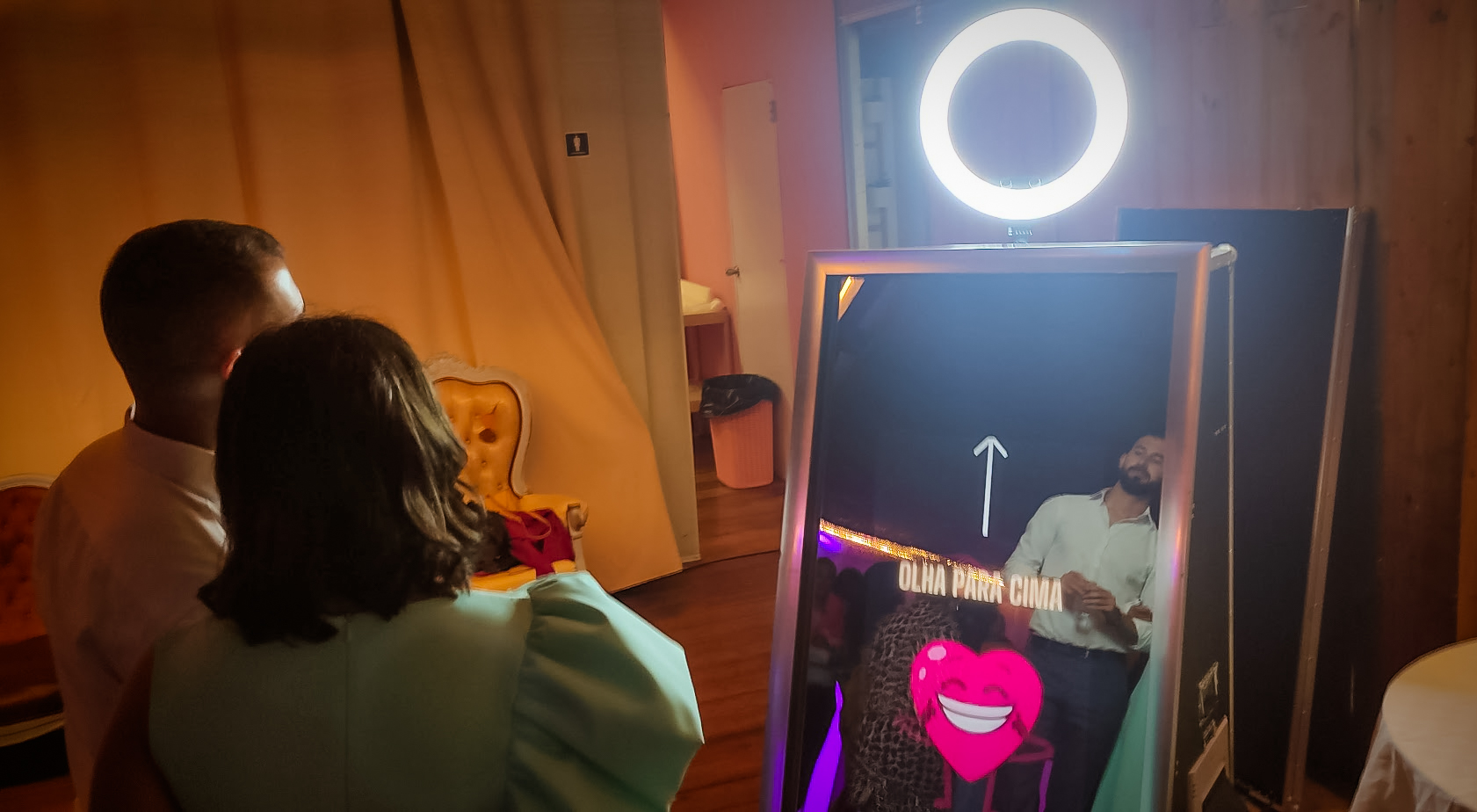 Encante os seus convidados com o nosso único Magic Mirror! Este espelho interativo capta momentos mágicos com gestos, proporcionando lembranças instantâneas e personalizadas do seu evento especial.